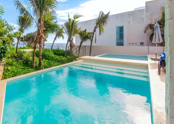 Com piscina ao ar livre para relaxamento dos hóspedes, a pousada Chic Beachfront Condo Ocean View Rooftop Pools Akumal está localizada a cerca de 25 minutes a pé do Parque Ecológico de Akumal. Com acesso a pátio, esta casa de férias de Akumal está localizada 2.2 km da Praia Akumal.